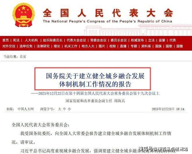 近日,国务院关于建立健全城乡融合发展体制机制工作情况的报告已提请全国人大常委会议审议。