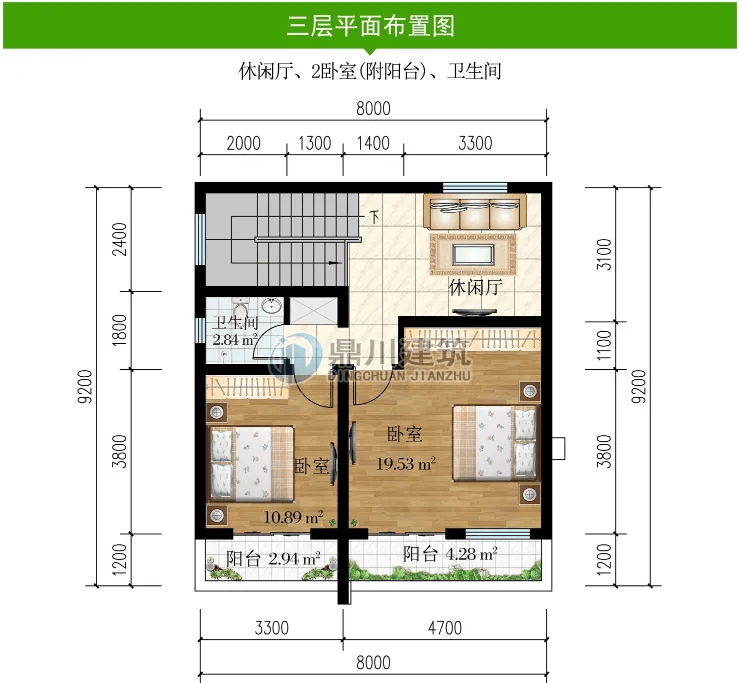 三层2间卧室,带小休闲厅。两个卧室都有小阳台,和二层一样的设计。全屋5间卧室,满足家庭的生活居住需求。