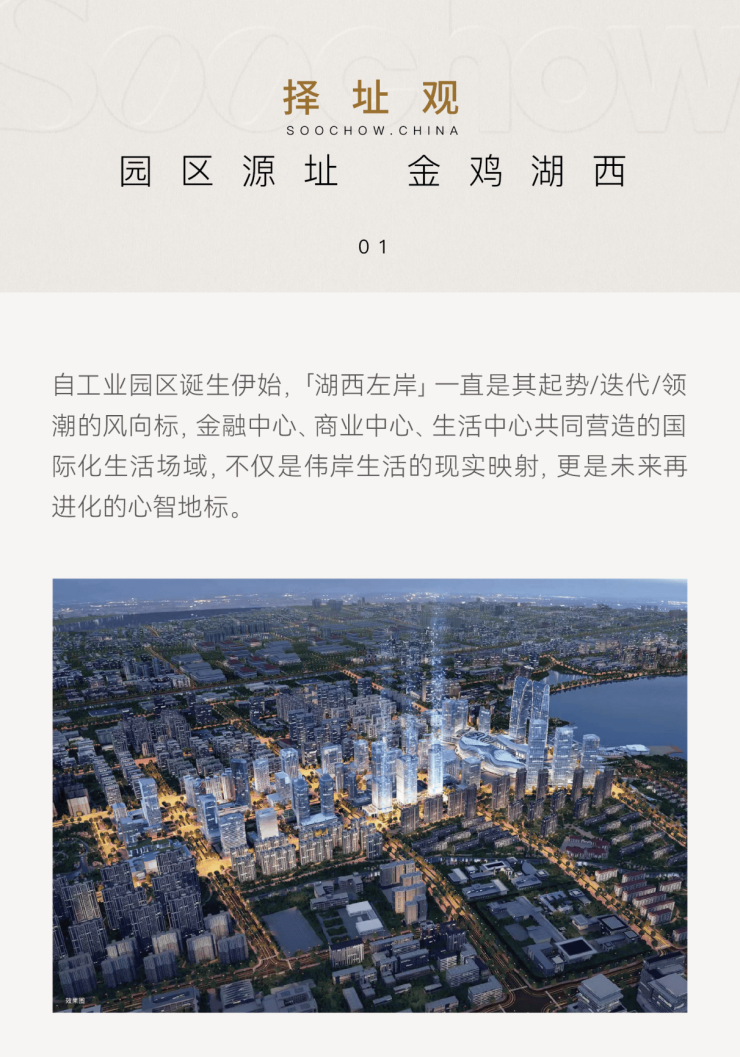 最关键的是,这里离金鸡湖只有大约800米。这意味着你不仅能享受5A级金鸡湖湖景风光,更是占据了城市最核心的自然资源与商务氛围,是名副其实的湖西CBD核心资产。