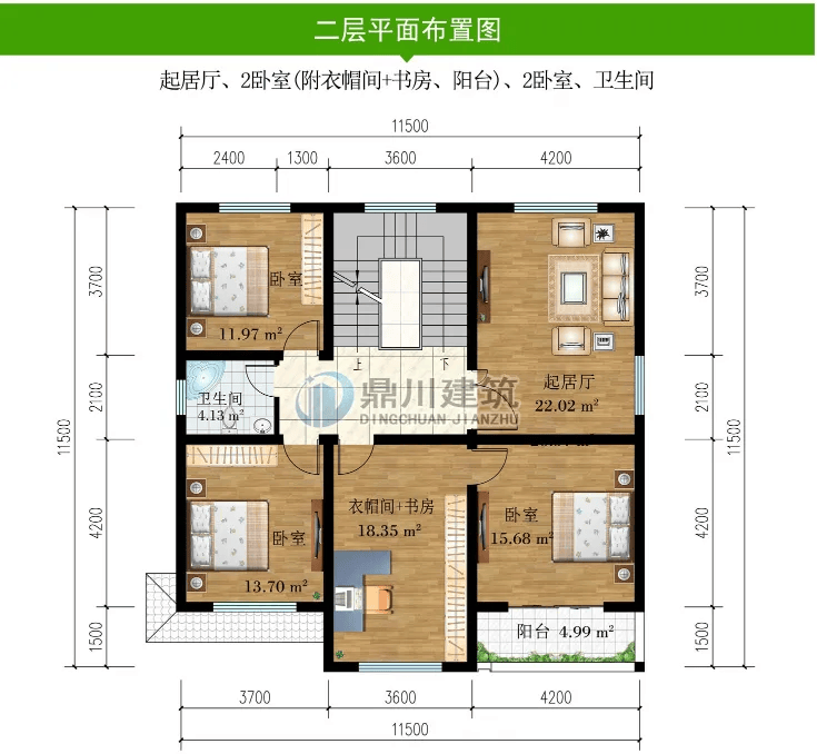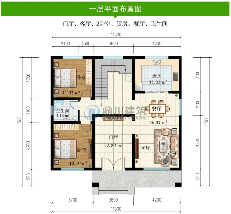 别墅图纸编号:DC1114,砖混结构,开间11.5米,进深11.5米,占地面积132.28平方米,建筑面积291.38平方米,主体造价30-36万。