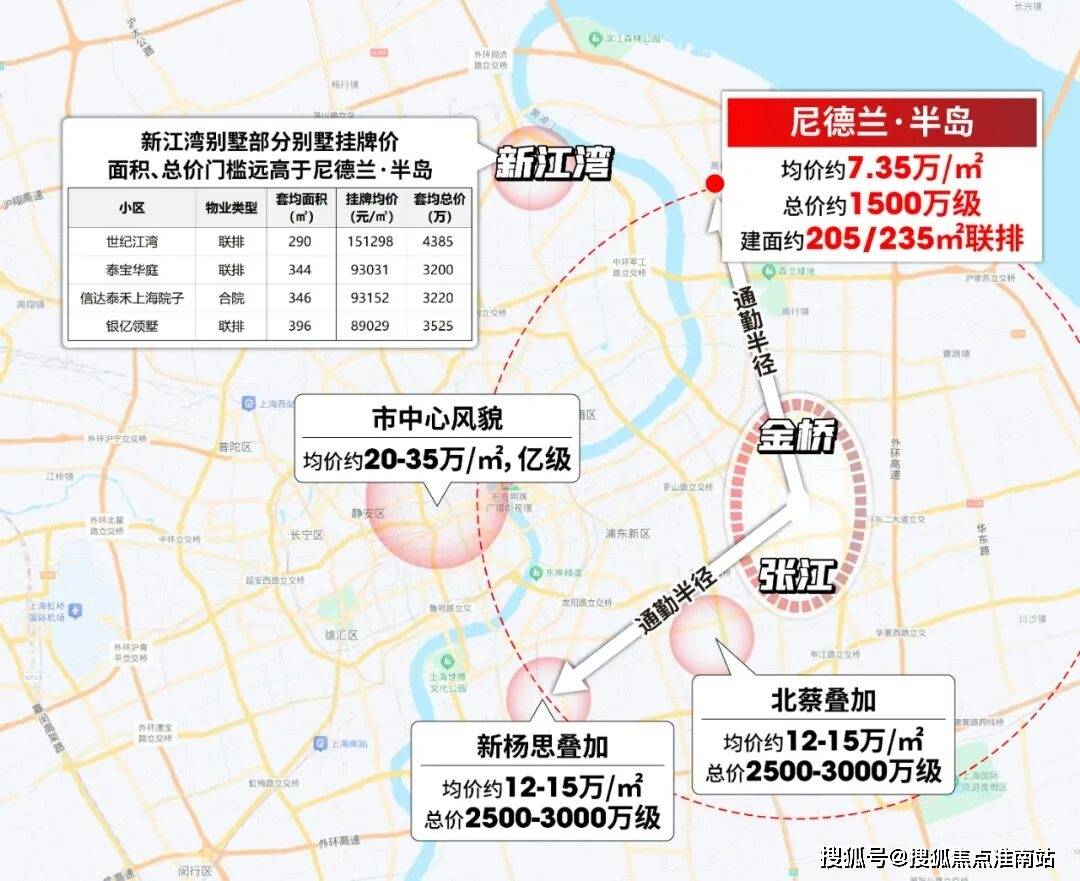 若以金桥、张江为核心通勤圈,尼德兰·半岛的联排业态远超其它产品(新杨思、北蔡),总价却仅为其一半左右。