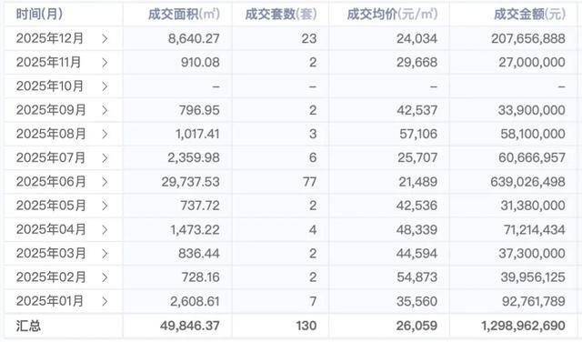 但这依然不影响它夺下2025年别墅销冠:全年成交130套,成交面积4.98万㎡,成交金额约13亿元。
