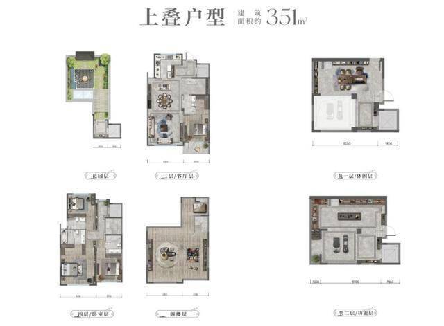 小合院别墅是地上三层 地下一层,使用面积290㎡,超高赠送率,独门独院,带私家电梯。