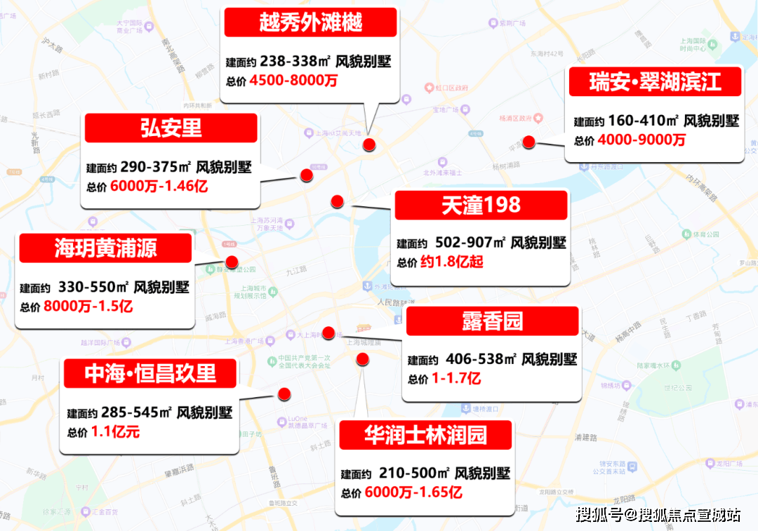 臻稀地段遇上鼎流产品,风貌别墅占据了上海顶豪塔尖位置。黄浦区风貌别墅单价25-30万/㎡;北外滩和东外滩滨江风貌别墅21-24万/㎡;总价则以大几千万起,甚至上亿。